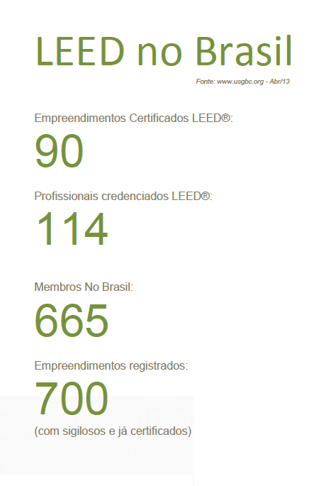 No Brasil estima-se que 700 empreendimentos estão em busca desta certificação. O país ocupa o 4º lugar no ranking das nações interessadas pelo selo, atrás de EUA, Emirados Árabes e China.