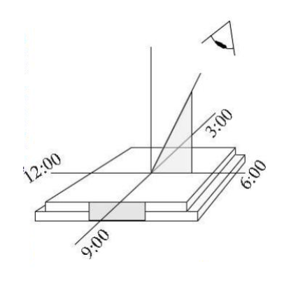 Ao se especificar a direção de visão é necessário pensar de como será visto o dispositivo a ser usado. Por exemplo, uma calculadora normalmente é posicionada numa mesa ou segurada na palma da mão e visualizada numa direção de 6 horas.